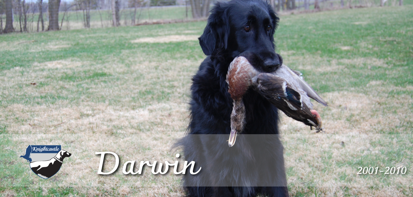En 1989, je voulais avoir un chien avec qui m’amuser et qui partagerait ma vie. Les moyens de recherche étant limités à cette époque, je suis tout simplement tombé amoureux de cette race unique dans un livre intitulé « Les chiens du monde ». Mais je n’ai pas été capable d’en trouver un au Canada, les éleveurs étant peu nombreux. C’est comme ça que j’ai eu Octave, un Golden retriever, mon premier chien pure race. Il a été 14 ans avec moi. Comme il vieillissait, j’ai pensé qu’un deuxième chien serait une bonne idée et cette fois, ce chien devait être un Flat-coated retriever ! C’est comme ça que Darwin est entré dans ma vie en juillet 2001. Mais il y avait un prix à payer !