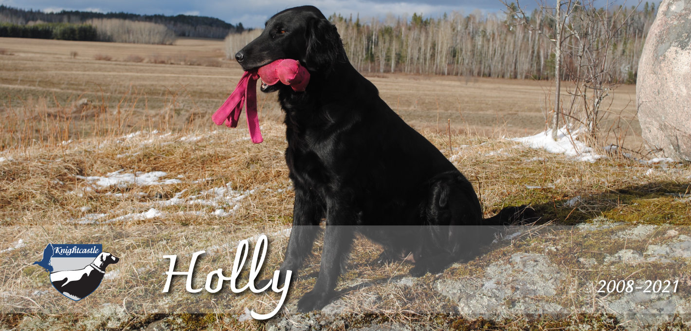 J’ai réalisé que Holly était mon seul chien qui connaissait tous mes chiens, du premier Flat-coated, Darwin, jusqu’à ses petits-enfants de la portée des « Romantics » de 2021. Elle fut aussi mon dernier chien de cette période folle de ma vie où j’ai créé Knightcastle, allant d’événements en événements à travers le Canada et les États-Unis. Également le dernier chien né dans la maison originale de Mascouche (Québec), où l’élevage Knightcastle a été fondé en 2005.