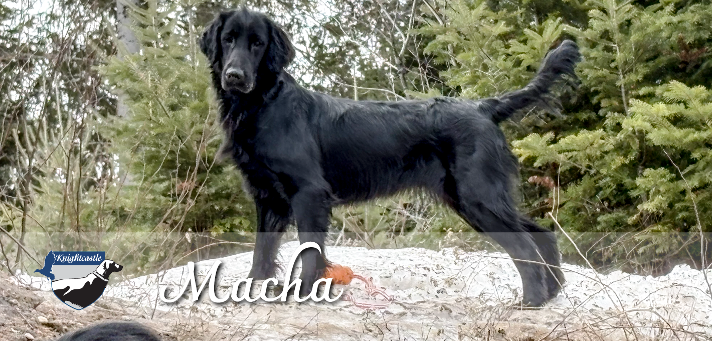 J’avais besoin d’un bon nom pour elle. Je considère le début de cette génération aussi important que le moment où Nova est entrée dans ma vie en 2003. C’est donc en prenant une partie du nom d’enregistrement de son arrière-arrière-arrière grand-mère, Happyshack Macha, qu’elle est devenue Macha, faisant ainsi son entrée dans la meute.